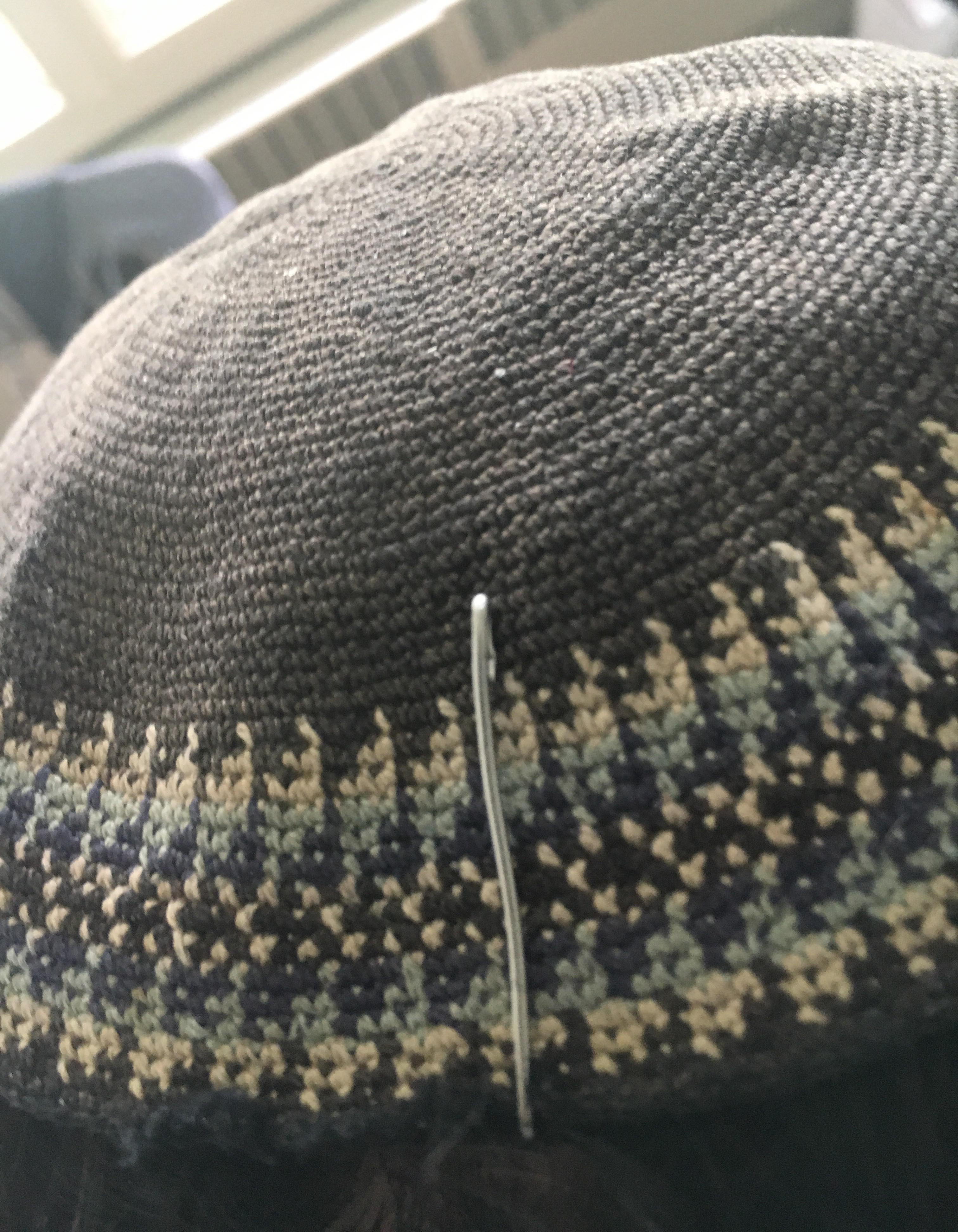 There’s not much more to this process. You’re going to bend the wire in half and clamp down on the bent end similarly to before. You want to get a good kink here so it grips your kippah and hair.
